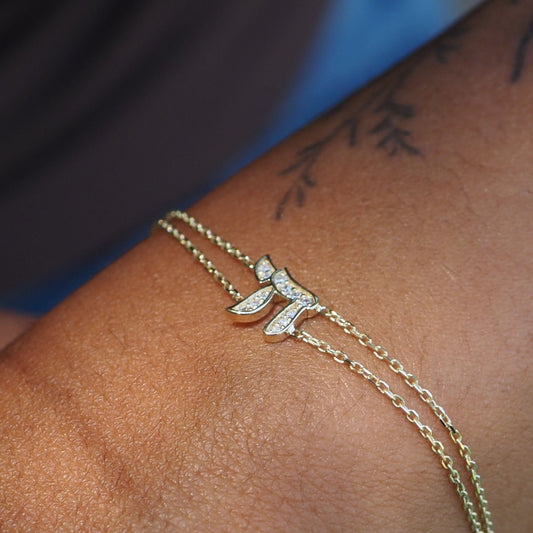 The Eternal Chai: Solid 14k Gold & Diamond "Life" Bracelet | Modern Luxury Heirloom