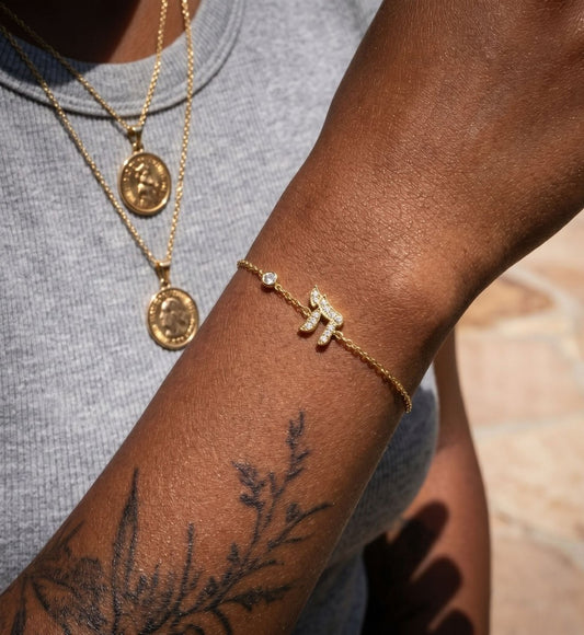 Diamond and 14k Gold Hebrew "Ema" Bracelet