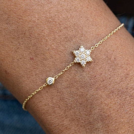 The Identity Star: 14k Gold & Diamond Magen David Bracelet | Modern Pave Statement Piece