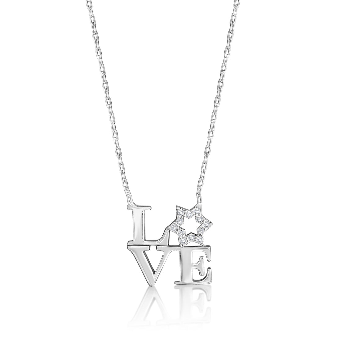 Each letter is the same size, making the square the exact size.  And the star in place of the O in LOVE, is set with high-quality cubic zirconia gemstones.  If you'd like to learn more about what cz stones are, watch Alef Bet's tiktok video.  These stones will never dull or lose their luster.