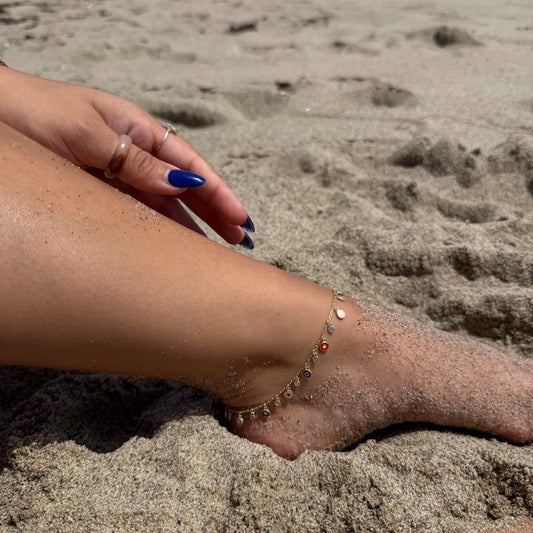 The "Amulet" Evil Eye Anklet: Hand-Crafted Protection in a Pop of Color
