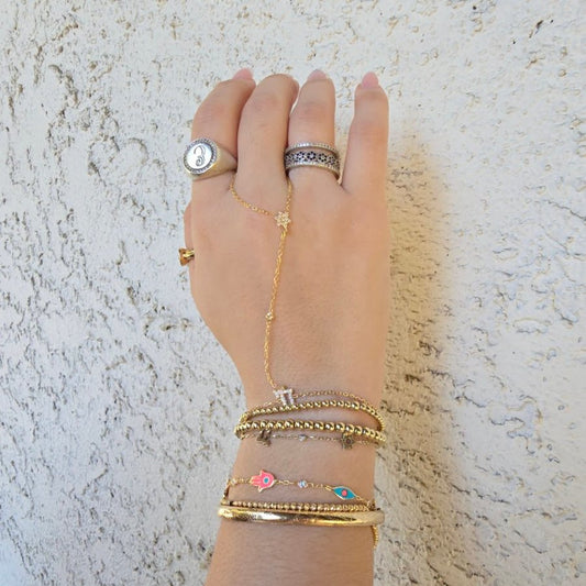 Chai and Star of David Hand Chain Bracelet with Gemstones