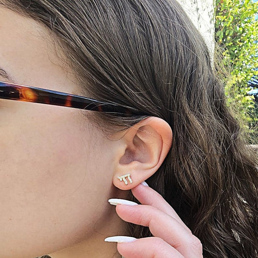 Chai Earrings in 14k Gold Plated Sterling Silver with CZ