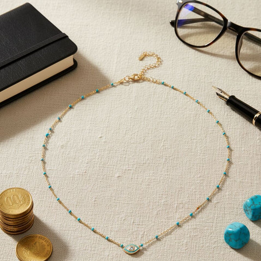 Dainty Diamond Evil Eye Necklace in 14k Gold
