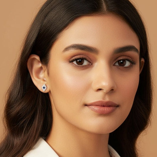 14k Gold Diamond Sapphire Evil Eye Stud Earrings | Alef Bet