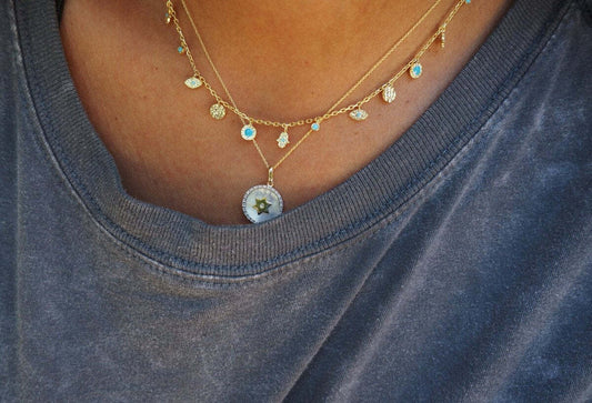 Hamsa Diamond Bezel Necklace in 14k Gold for Women