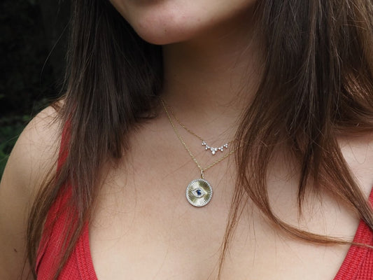 Diamond and Sapphire Evil Eye Necklace | 14k Gold
