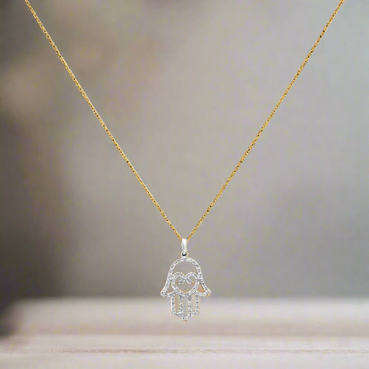Hamsa and Heart Diamond Necklace in 14k Gold