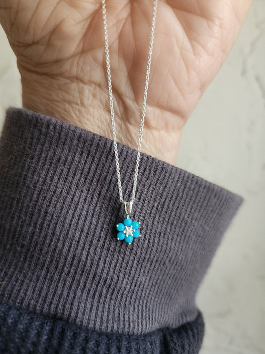 Diamonds and Turquoise Jewish Star Necklace