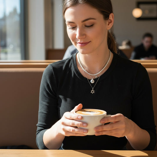 Pearl with Jewish Star Necklace with Diamonds for Women