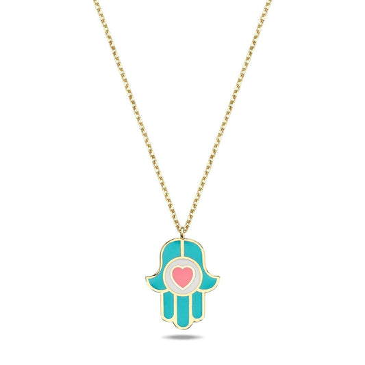 Hamsa Hand Necklace: Gold Plated with Enamel & Dazzling Sparkle