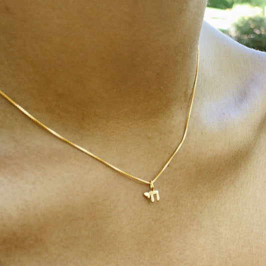 Chai Hebrew Pendant 14k Gold on Adjustable Chain | Alef Bet