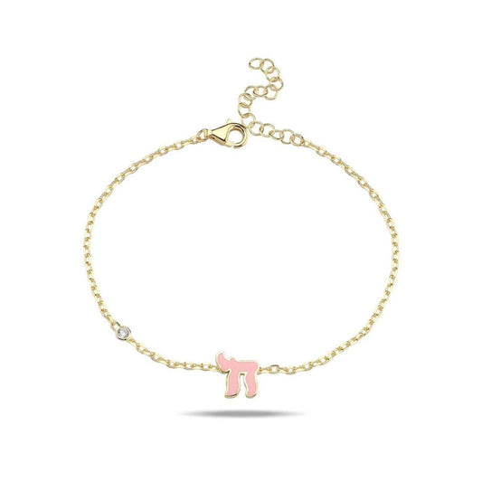 Chai Hebrew Bracelet in Pink or Blue for Girls and Women