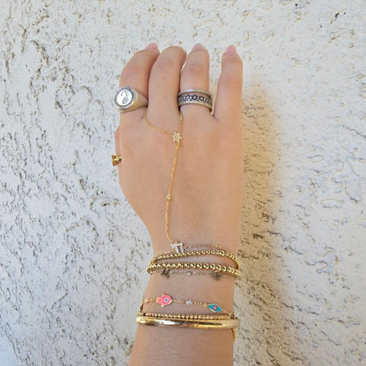 Chai Star of David Hand Chain Bracelet with Gemstones | Alef Bet