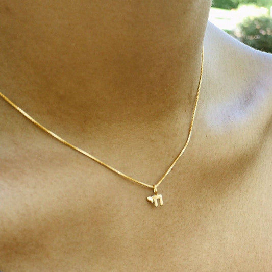 14k Yellow Gold Mini Chai Necklace | Hebrew Symbol