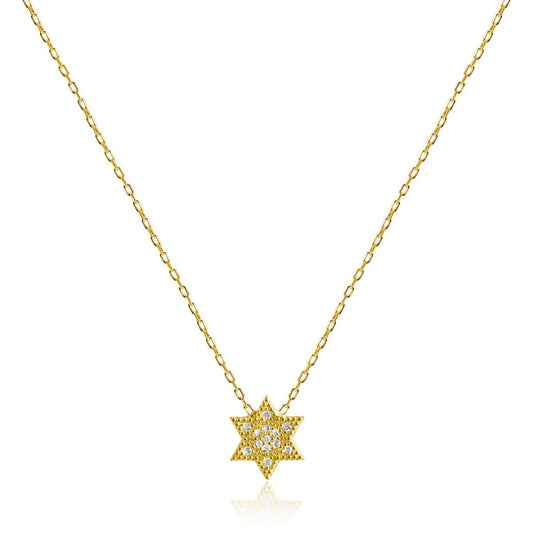 Jewish Star Yellow Gold Plated Cubic Zirconia Necklace
