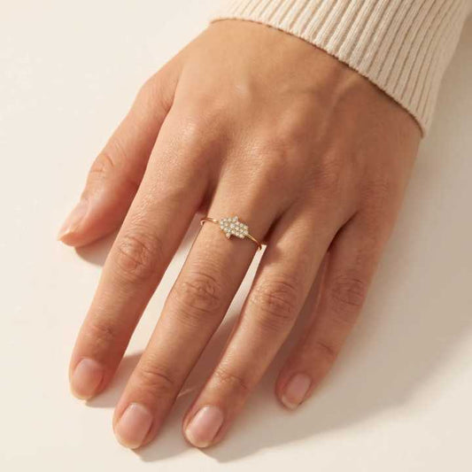 14k Gold Diamond Hamsa Hand Ring Adjustable | Alef Bet