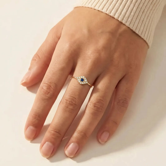 Pave Evil Eye Dangle Ring: Sterling Silver Eternity Band for Protection