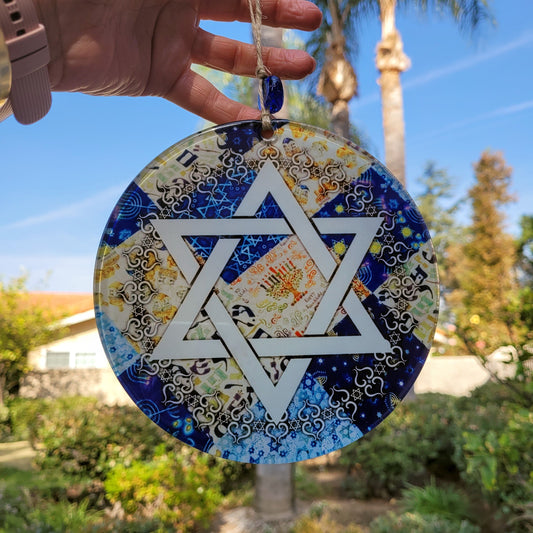 Star of David Glass Wall Hanging with Evil Eye