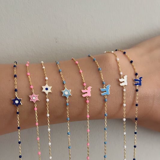 Pink or Blue Jewish Star Bracelet with a Sparkling Gemstone
