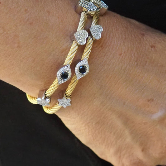 Multi-Charm Bangle Bracelet: Hamsa, Evil Eye, Star & Heart