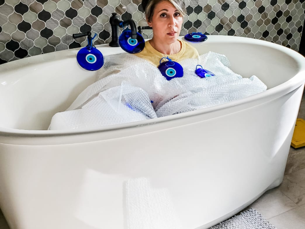Relaxing with a soothing, hot bath is also amazing for a mental health improvement day.
