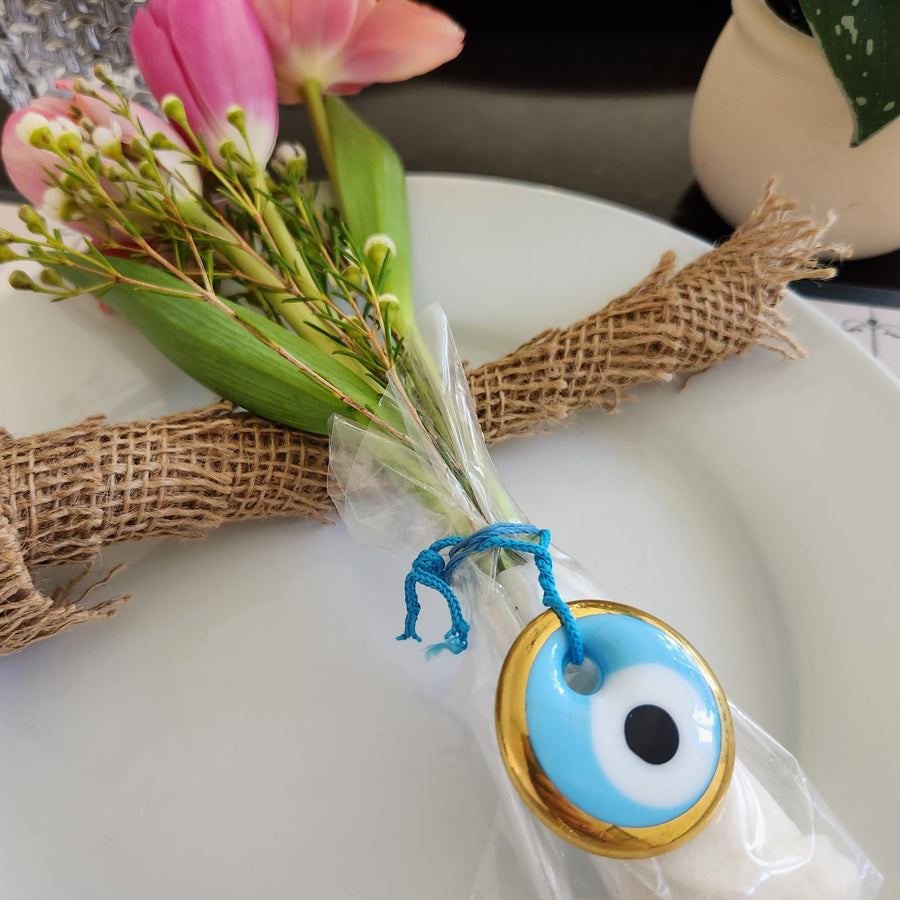 Blue Evil Eye Home Wall Decor with Gold Rim