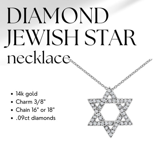 Diamond Jewish Star Necklace in 14k Gold