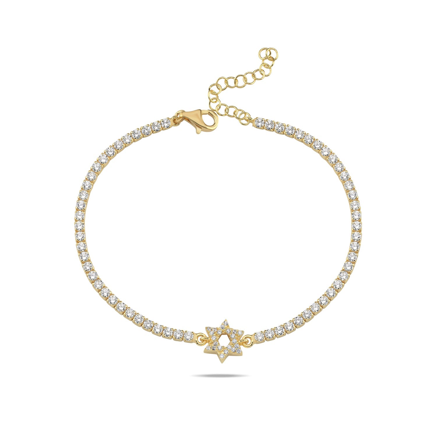 CZ Tennis Bracelet: Pave Star of David Charm & Adjustable Gold