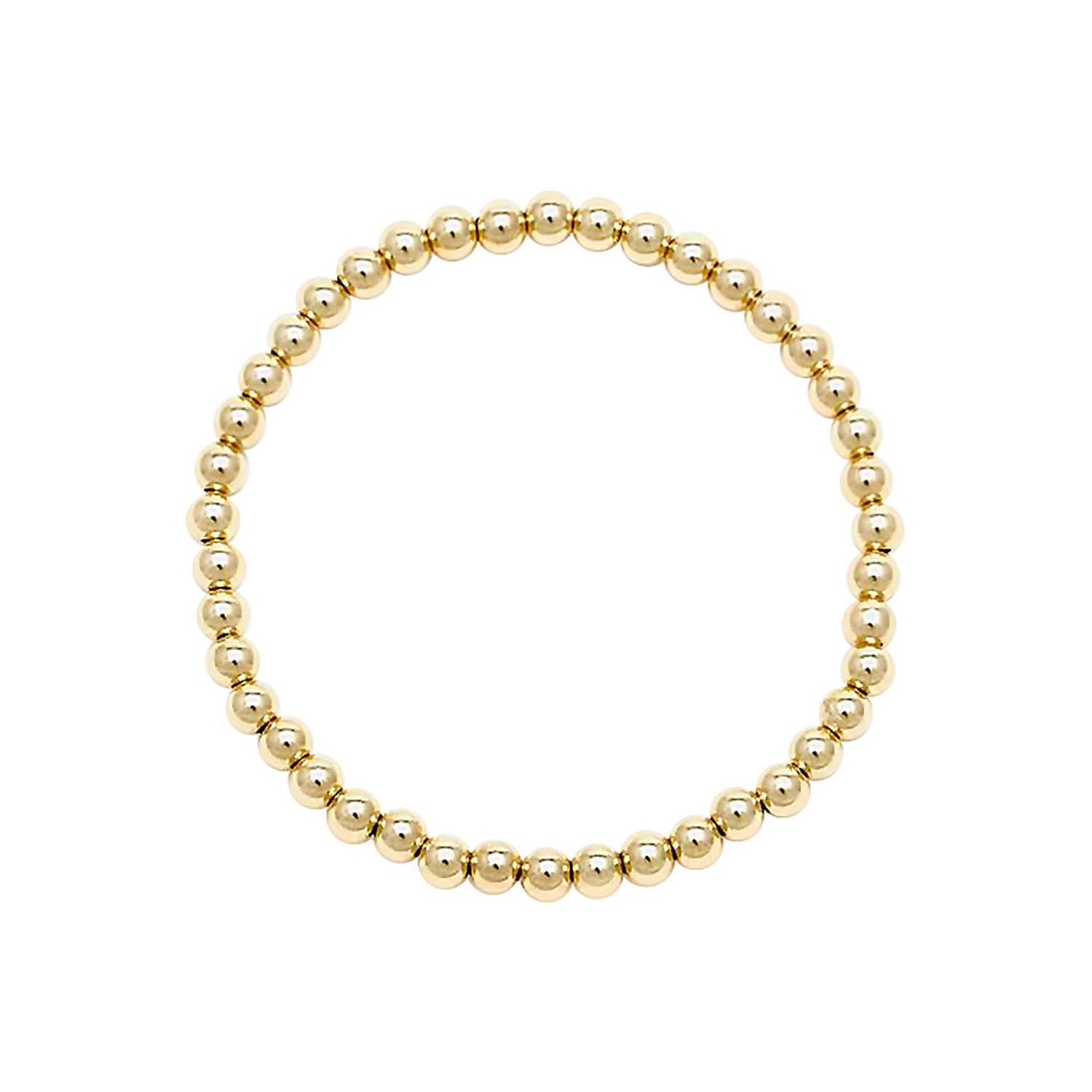 Experience the enduring elegance of our Yellow Gold Beaded Bracelet in a slightly bolder 4mm bead size. Hand-strung on durable jewelry elastic, this piece offers both exceptional comfort and lasting quality. Yellow gold, a timeless symbol of wealth and prosperity, brings a touch of luxury and warmth to any look. Its simple yet sophisticated design makes it a versatile essential, the go-to gold accent you'll want to wear every day, effortlessly complementing any outfit with a touch of refined shine. Enjoy the ease of slide-on comfort, with no tugging or fuss, perfect for those who value convenience. Designed for stacking, wear it solo for a noticeable touch of gold or layer it with your favorites to create your signature look. Crafted with care to fit snugly (6.75" recommended for a standard wrist), this water-safe bracelet is designed for worry-free everyday wear.