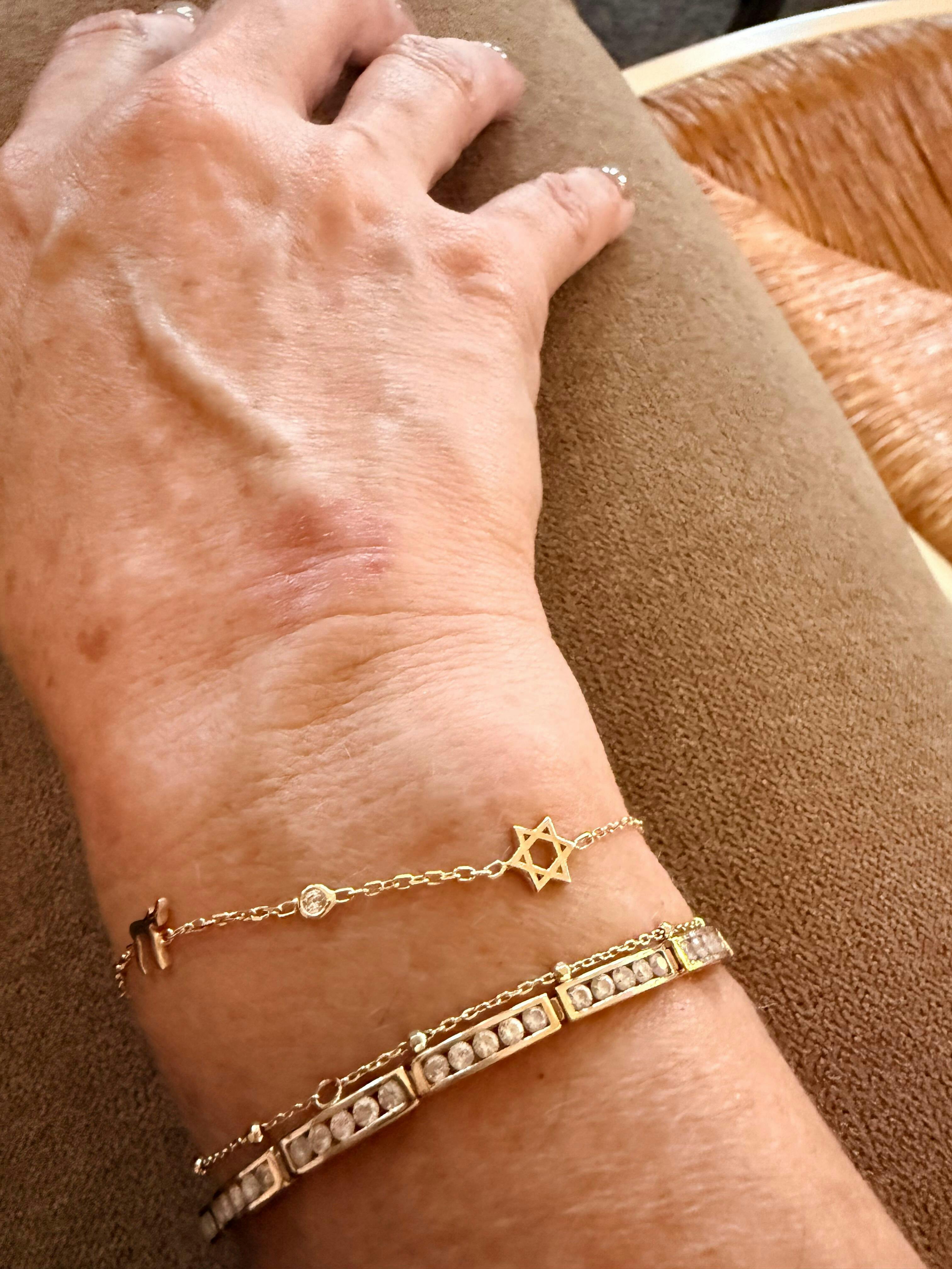 Looking for a bracelet that tells your story? This Charm Bracelet is a beautiful and meaningful choice, featuring a Star of David, Chai, Evil Eye, and Heart. Each charm represents a different aspect of life – faith, good fortune, protection, and love – making it a truly personal piece. Imagine how it will feel to wear this bracelet, a tangible reminder of what's important to you, jingling gently on your wrist. It's the perfect way to add a touch of meaningful whimsy to your everyday, and a thoughtful gift for someone you cherish. This bracelet is a celebration of life, faith, and connection.