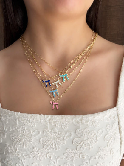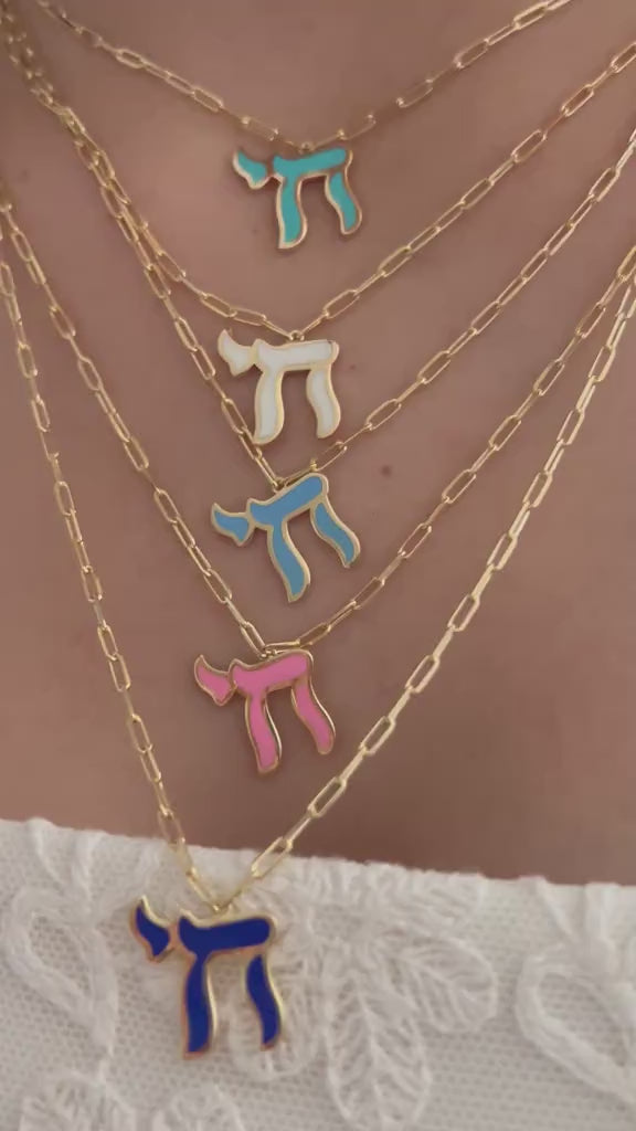 At the heart of this necklace is a beautifully crafted 5/8"-inch Chai (חי) charm, a powerful Hebrew symbol meaning "Life." It's believed to bless you with luck, love, happiness, good health, and fortune, carrying a rich heritage that resonates with every wear. The Chai charm is filled with smooth, vibrant enamel, allowing you to choose from a spectrum of captivating colors to reflect your personal style.