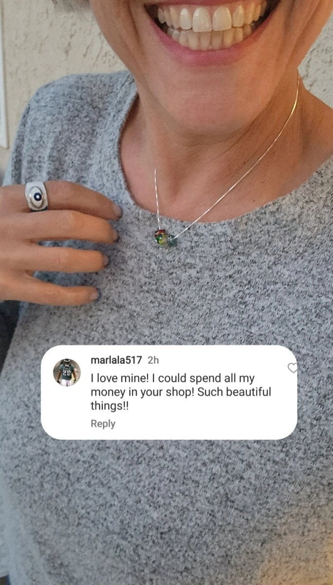 This limited collection of evil eye glass bead necklaces is dainty and adorable.  The handmade necklace is so colorful, they make you smile just looking at them.
