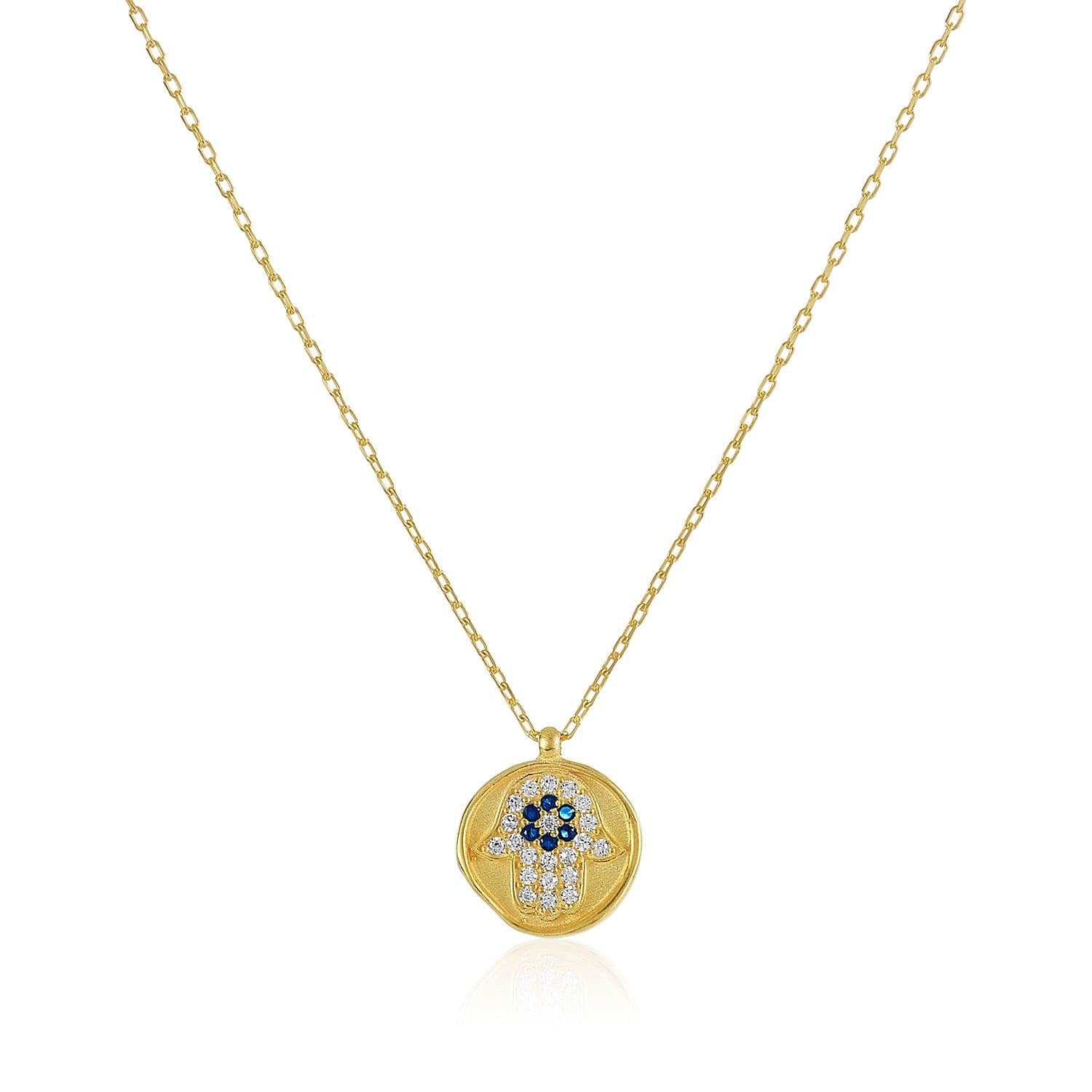 Golden Hamsa Necklace with an Evil Eye in the Center