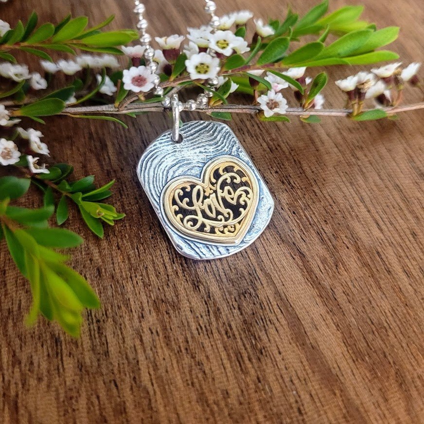 A declaration of love in a pure and simple form....with the word "love" in the center of the pendant. Surrounding the Love is an imprint of a fingerprint, making the charm very personal when you present your gift this holiday season, or for any occasion.