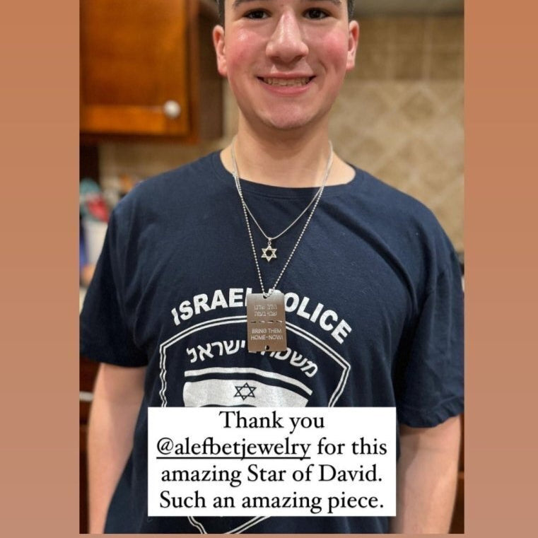 We want you to love your jewelry! We offer a 60-day return policy. Items must be in original condition with tags and packaging. Custom or personalized items cannot be returned unless there is a defect. Please email us at info@alefbet.com with any questions.