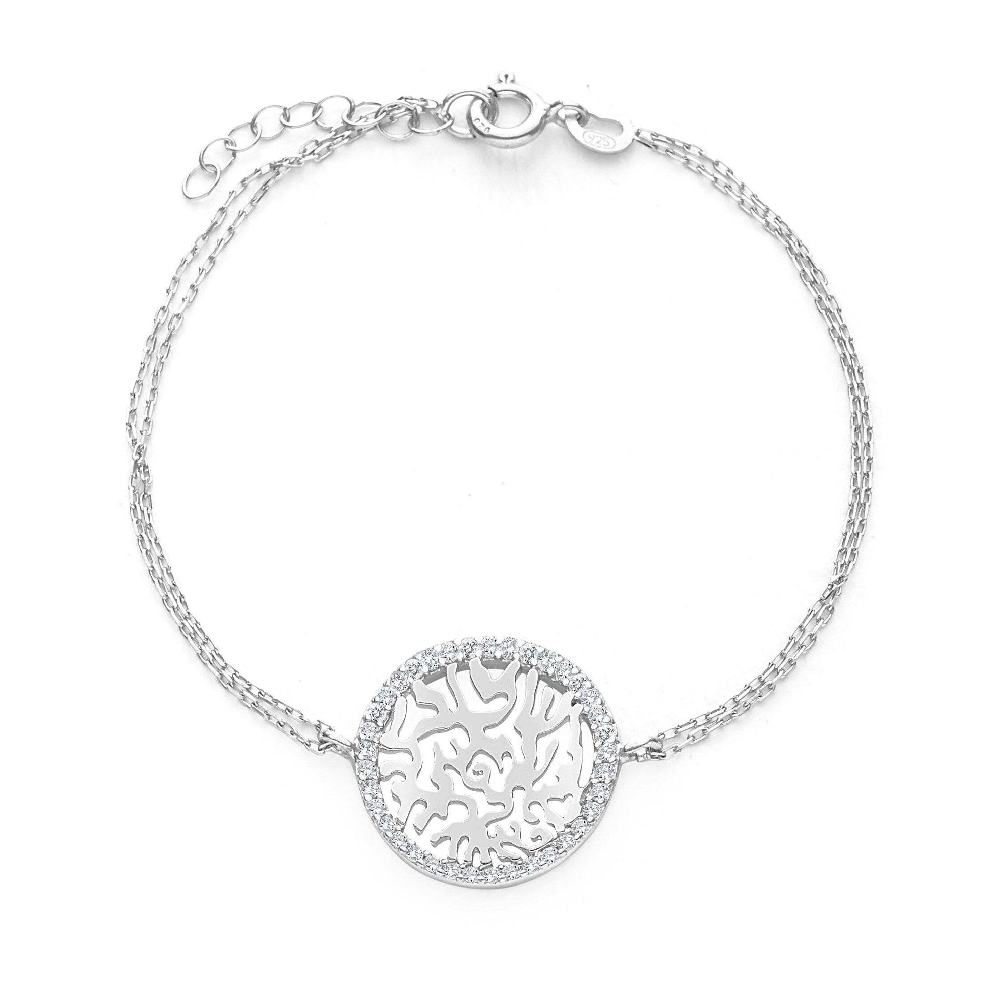 Sterling silver Shema Israel Hebrew prayer bracelet adorned with cubic zirconia, adjustable length, and meaningful symbolism.