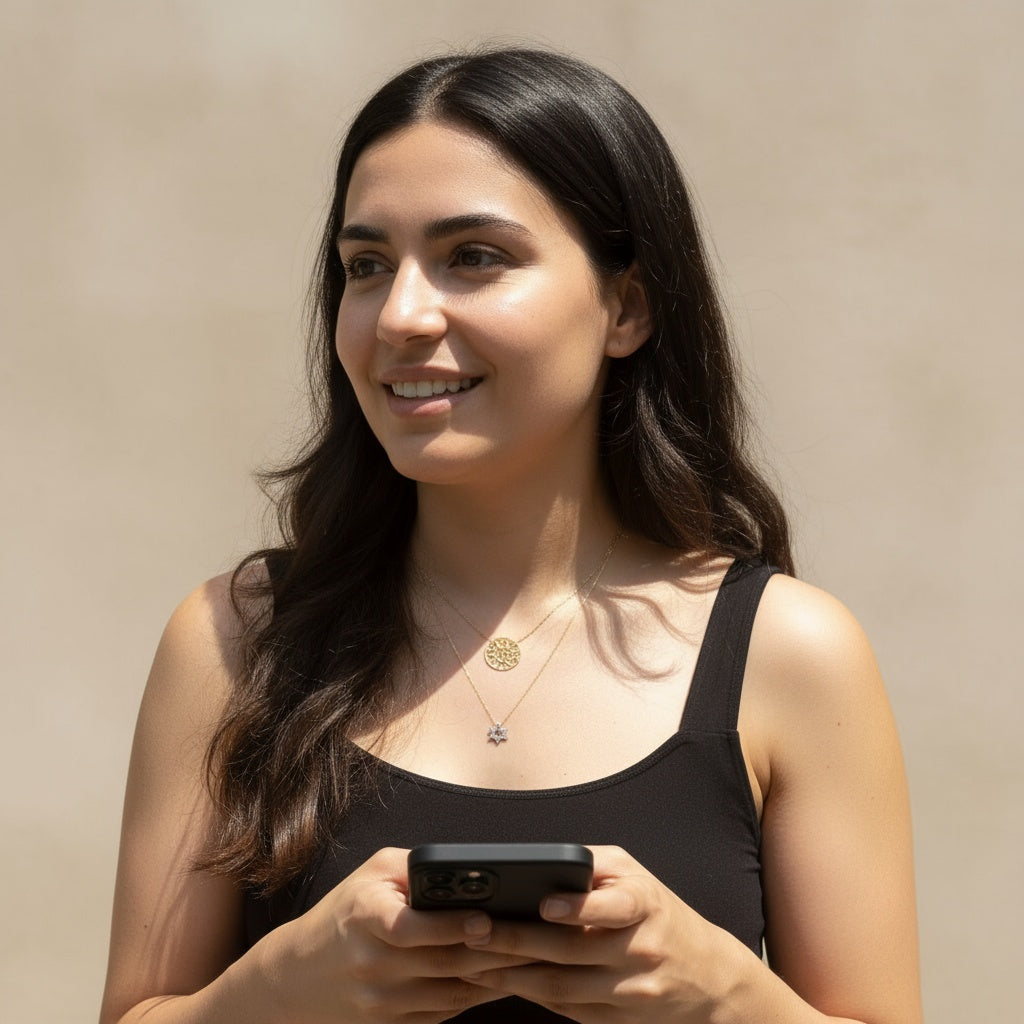 For regular cleaning, gently wipe your jewelry with a soft polishing cloth. For deeper cleaning, use mild soap and warm water with a soft brush, then rinse and dry thoroughly. Store your pieces separately to prevent scratching. Visit our Care Guide for detailed instructions on maintaining specific materials.