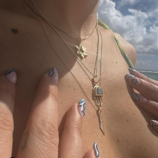 Most of our sterling silver and 14k gold pieces are water-safe for everyday activities like showering and swimming. However, we recommend removing your jewelry before using harsh chemicals or soaps to maintain its beauty. For red string bracelet designs, we suggest keeping them dry to prolong their lifespan.