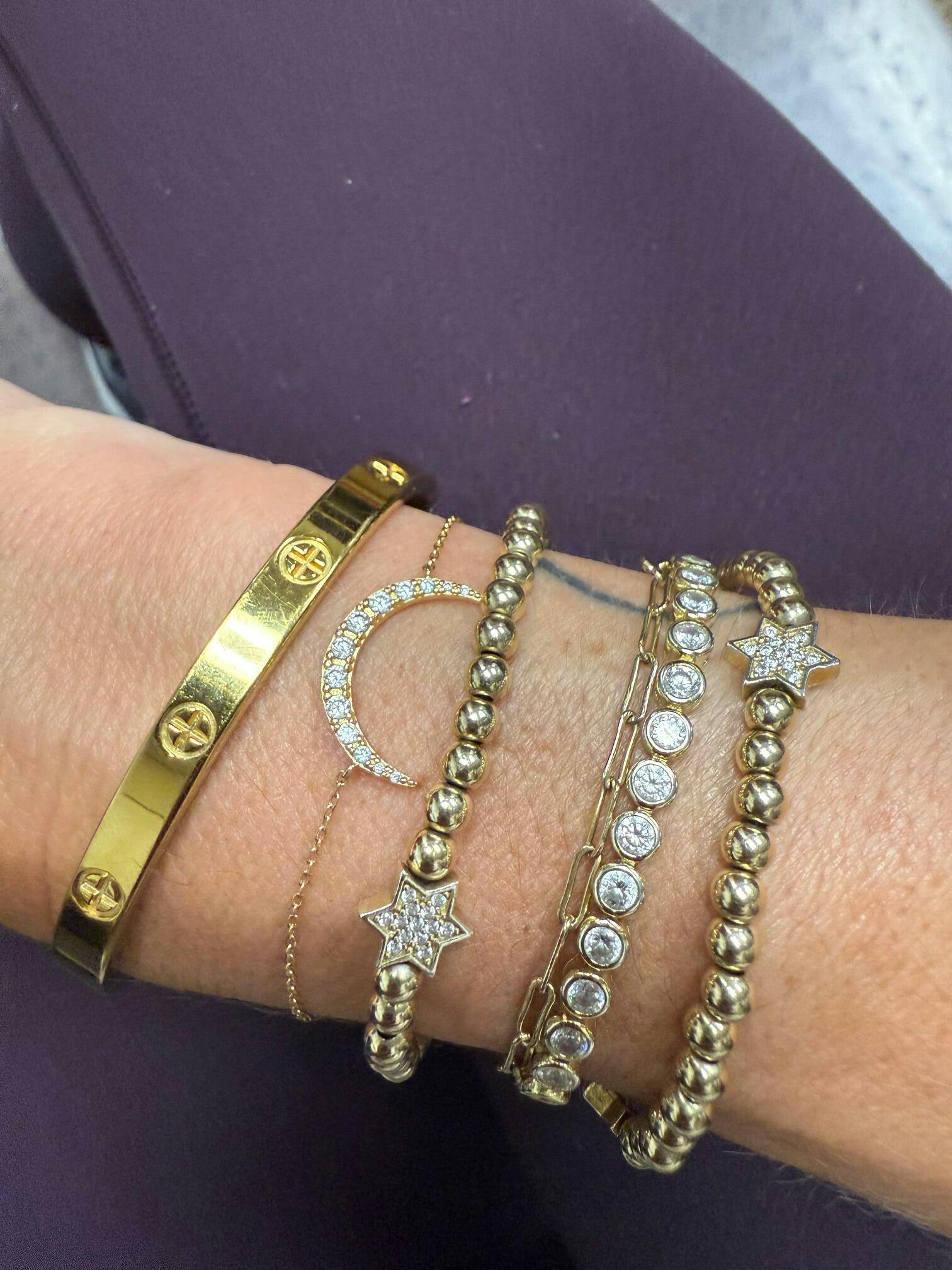 Adorn your wrist with an elegant Jewish Star and bead bracelet to represent your faith.