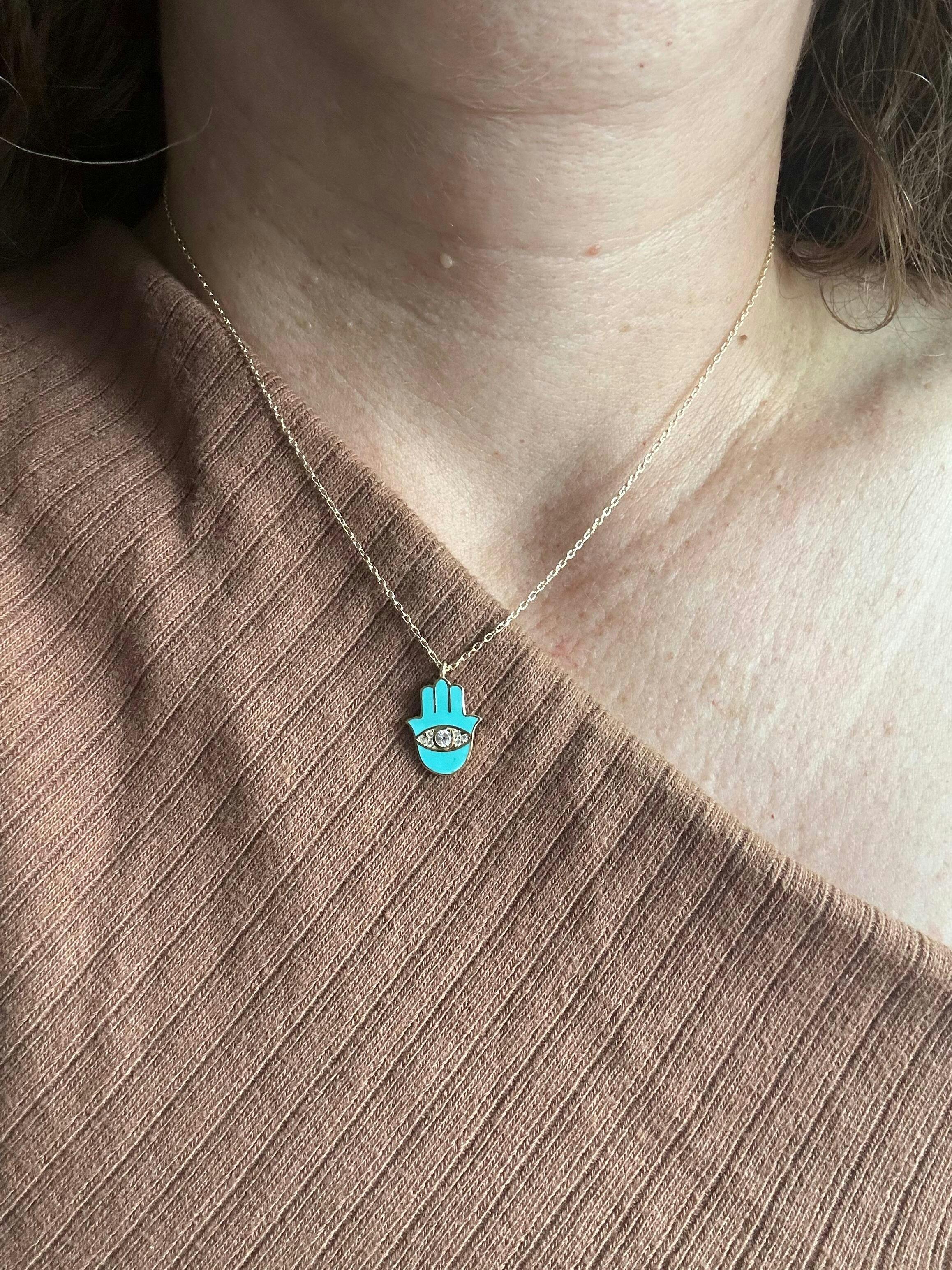 1. Pink, White, Navy, Turquoise, or Black Enamel Hamsa Necklace: