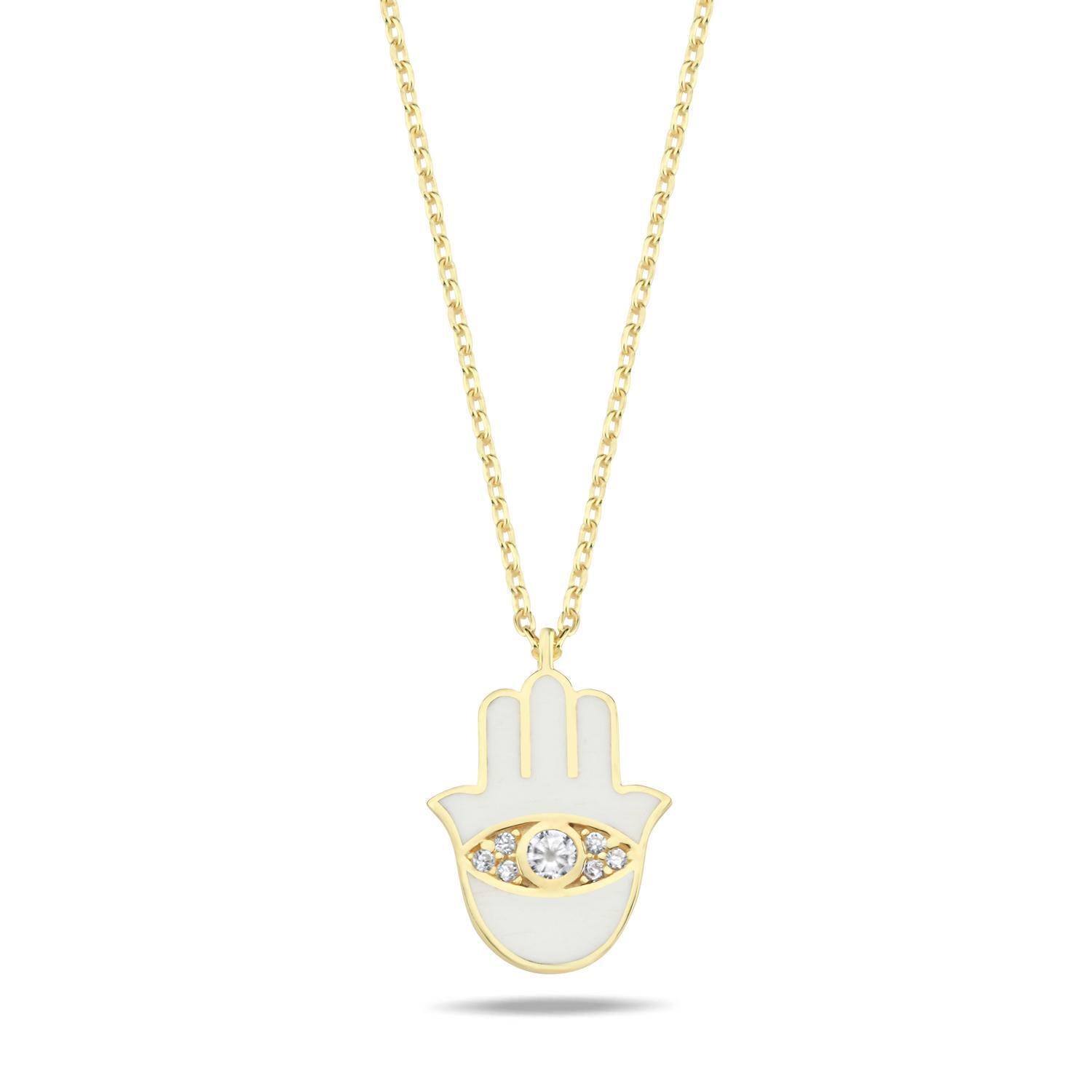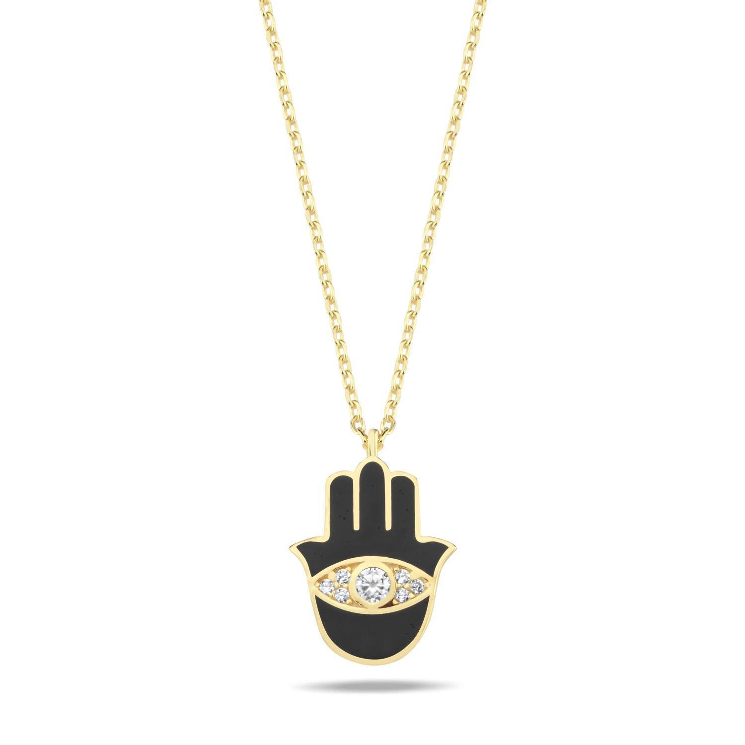 Hamsa Hand Necklace: Gold Plated with Enamel & Dazzling Sparkle