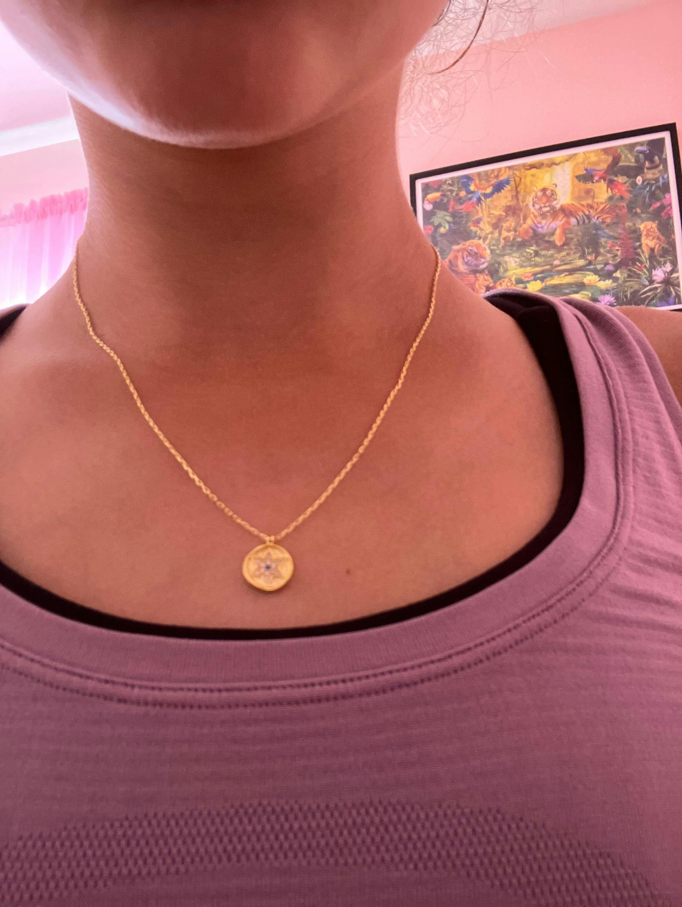 Golden Jewish star necklace.