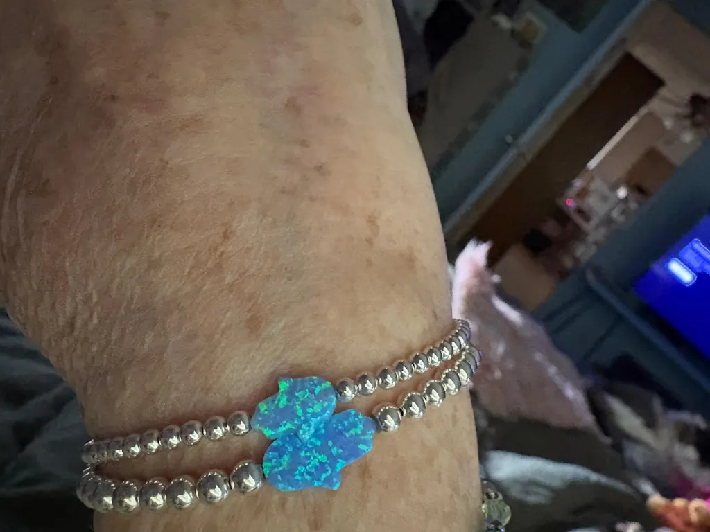 Style your blue opal hamsa bracelet with a pair of jeans, yoga pants, tank top, a sweater, or a white flowy dress. It goes well with any outfit, with all colors, whatever inspires you to be your personal best.