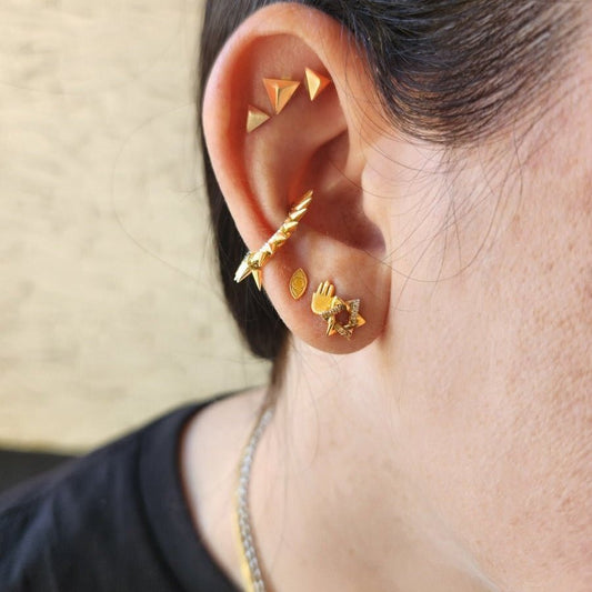 For regular cleaning, gently wipe your jewelry with a soft polishing cloth. For deeper cleaning, use mild soap and warm water with a soft brush, then rinse and dry thoroughly. Store your pieces separately to prevent scratching. Visit our Care Guide for detailed instructions on maintaining specific materials.