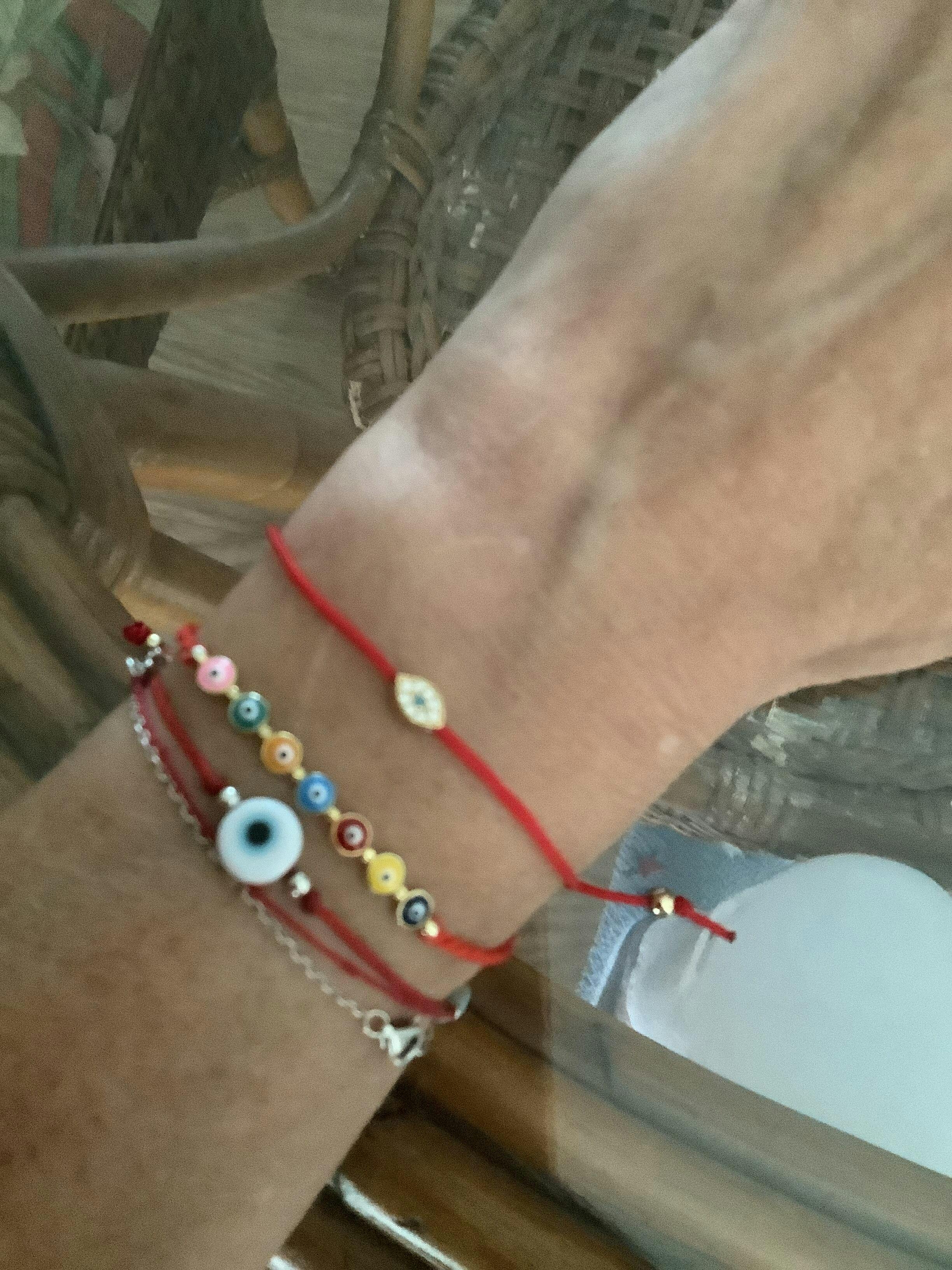 With a simple pull of the cord, you can adjust this lucky eye bracelet to fit your wrist-- it's one size fits all protection red string bracelet!